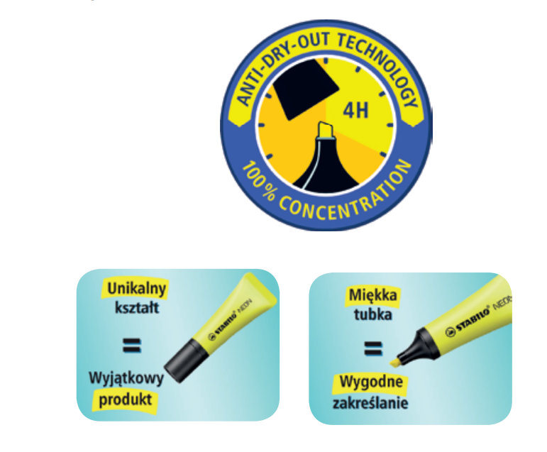 OPIS: Kieszonkowy zakreślacz o bardzo oryginalnym kształcie. Dostępny w 5 neonowych kolorach: żółtym, zielonym, pomarańczowym, różowym i magenta oraz w kompletach po 3 i 4 szt. Duża odporność na zasychanie – pozostawiony bez skuwki nie zasycha nawet przez 4 godziny. Grubość linii 2–5 mm. 01 - żółty 02 - zielony 03 - pomarańczowy 04 - różowy 05 - magenta 06 - kpl. 3 szt. 07 - kpl. 4 szt |
