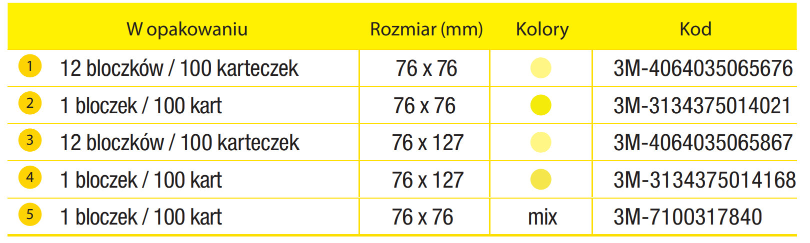 | NAZWA: | Karteczki samoprzylepne Post-it® w kolorze żółtym |